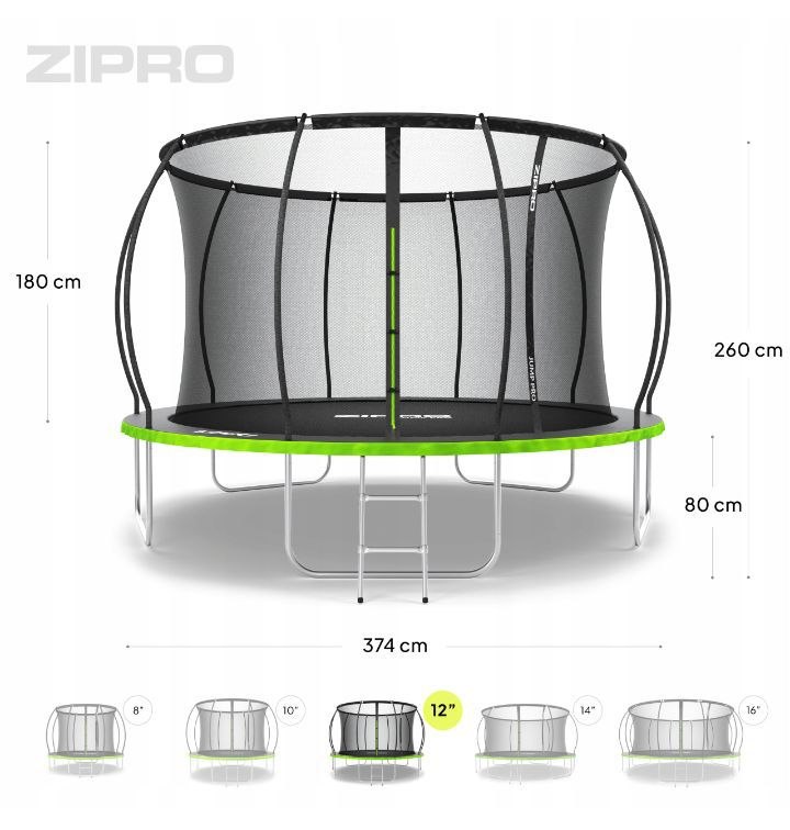 Trampolina ogrodowa Zipro Jump Pro Premium z siatką wewnętrzną 12FT 374cm