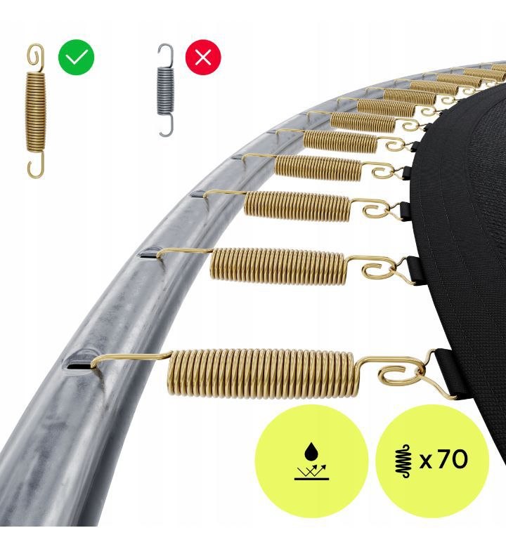 Doskonała sprężystość batutu – Dynamiczne odbicia i stabilne lądowania zapewnia solidna mata i gęsto rozstawione sprężyny.
