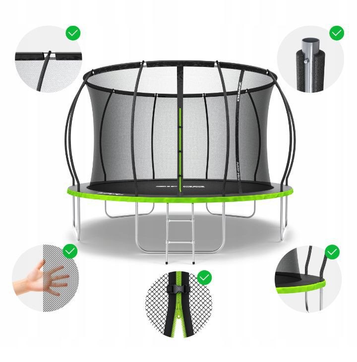 - Trampolina ogrodowa wyposażona jest w podwójne zamykanie.