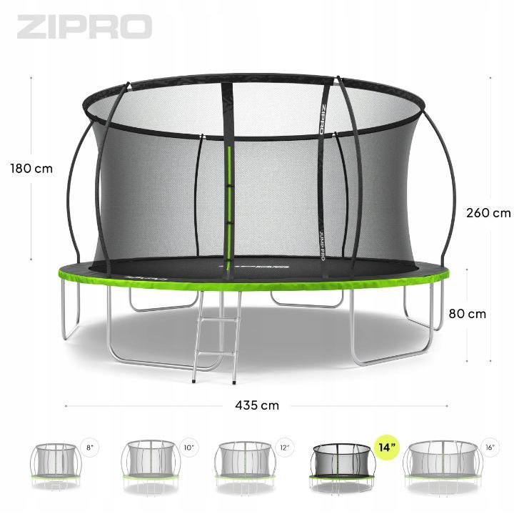 Napisz pierwszą opinię o „Trampolina ogrodowa z siatką wewnętrzną dla dzieci 435cm 14FT – Zipro”
