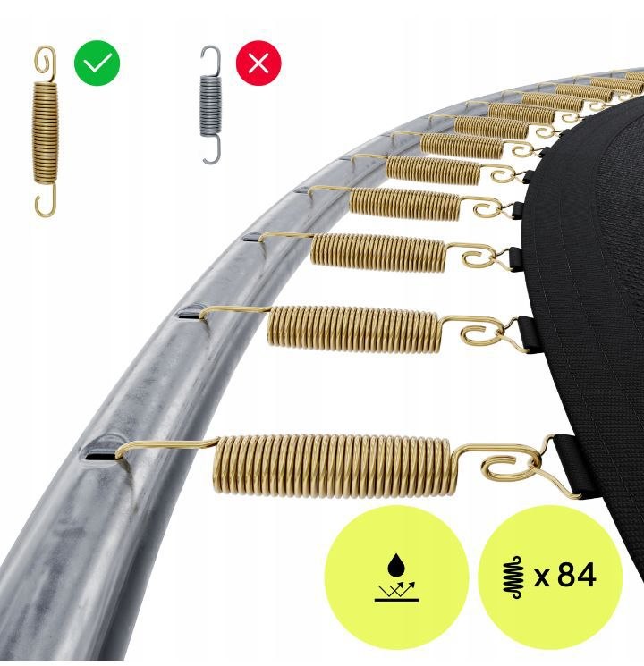 Doskonała sprężystość batutu – Dynamiczne odbicia i stabilne lądowania zapewnia solidna mata i gęsto rozstawione sprężyny.