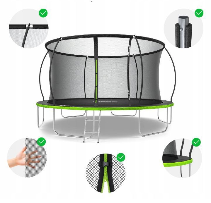 • Trampolina ogrodowa wyposażona jest w podwójne zamykanie.
