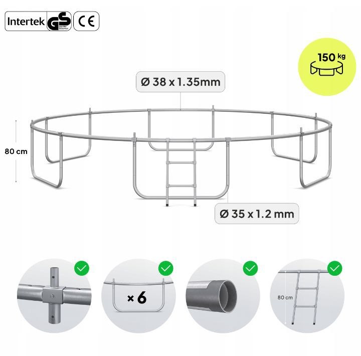 Wysoka wytrzymałość do 150 kg – Solidna konstrukcja i rury stalowe z wzmocnionymi łączeniami gwarantują stabilność.